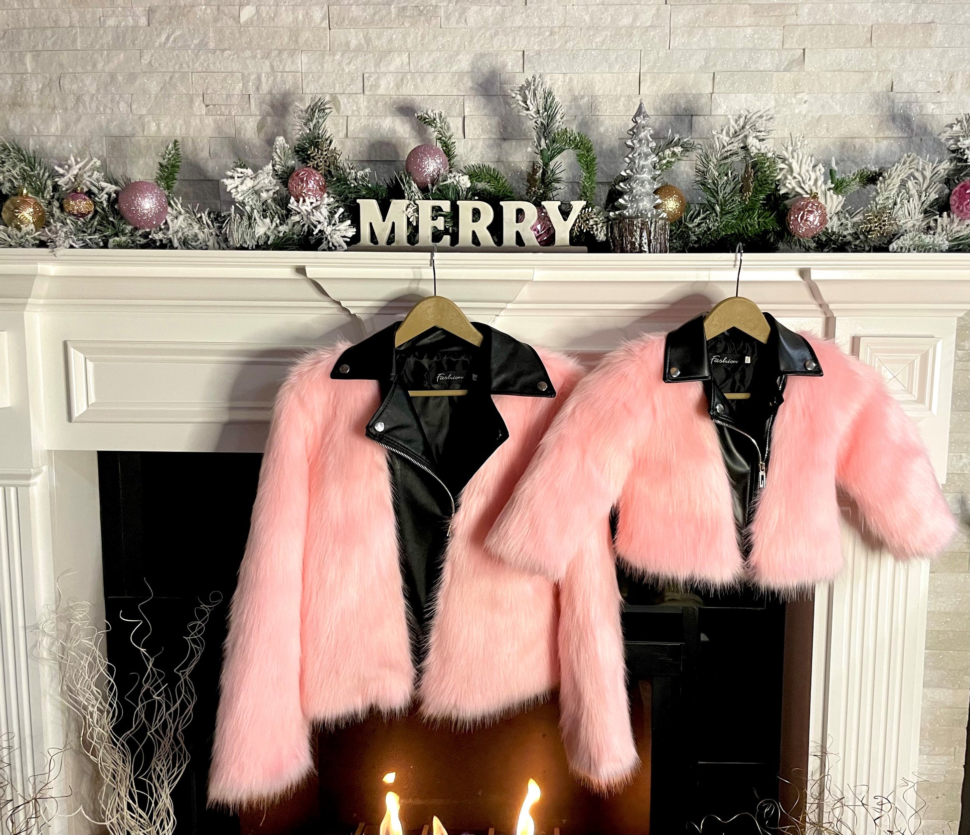 Girls Pink Faux Fur Moto Coat - Mommy & Me